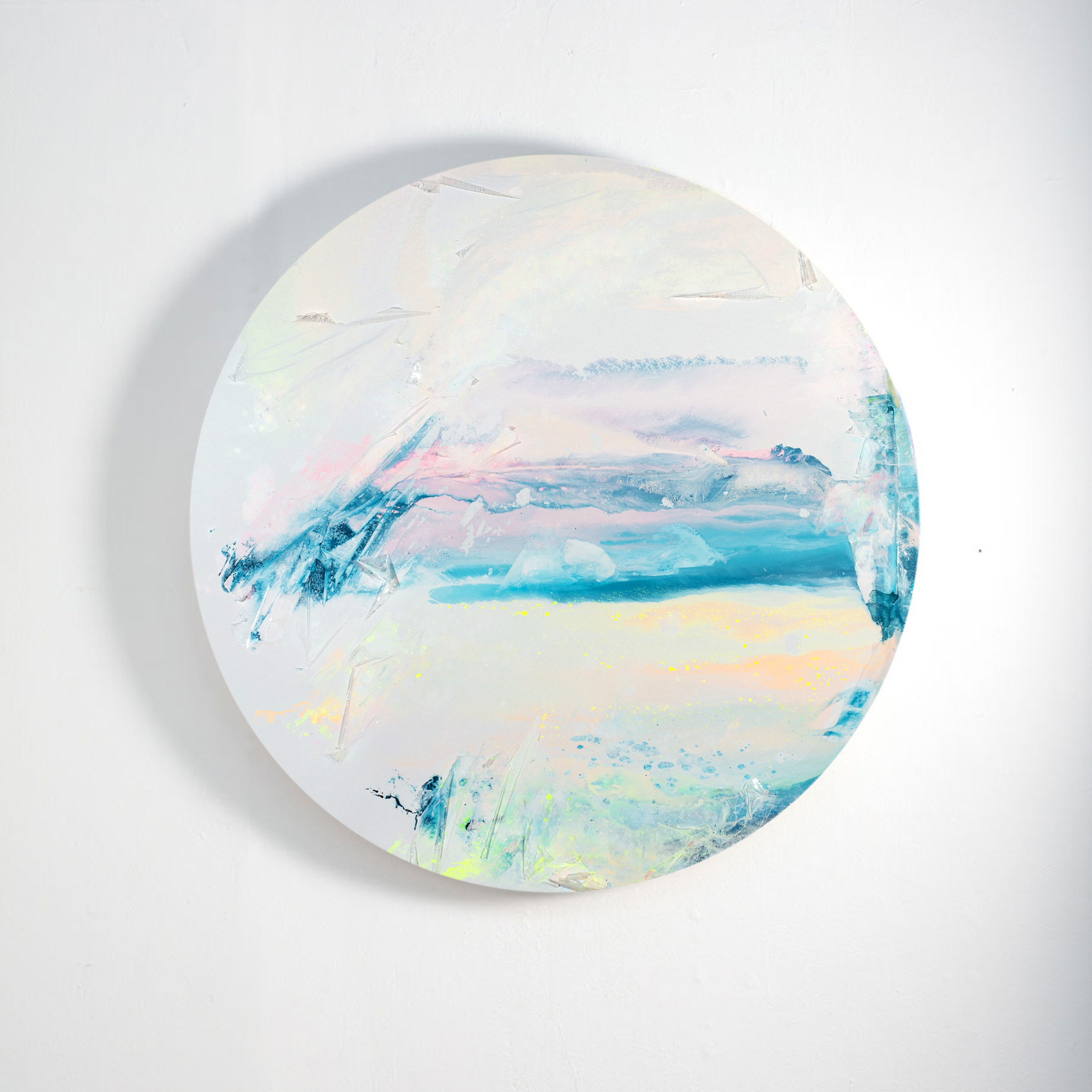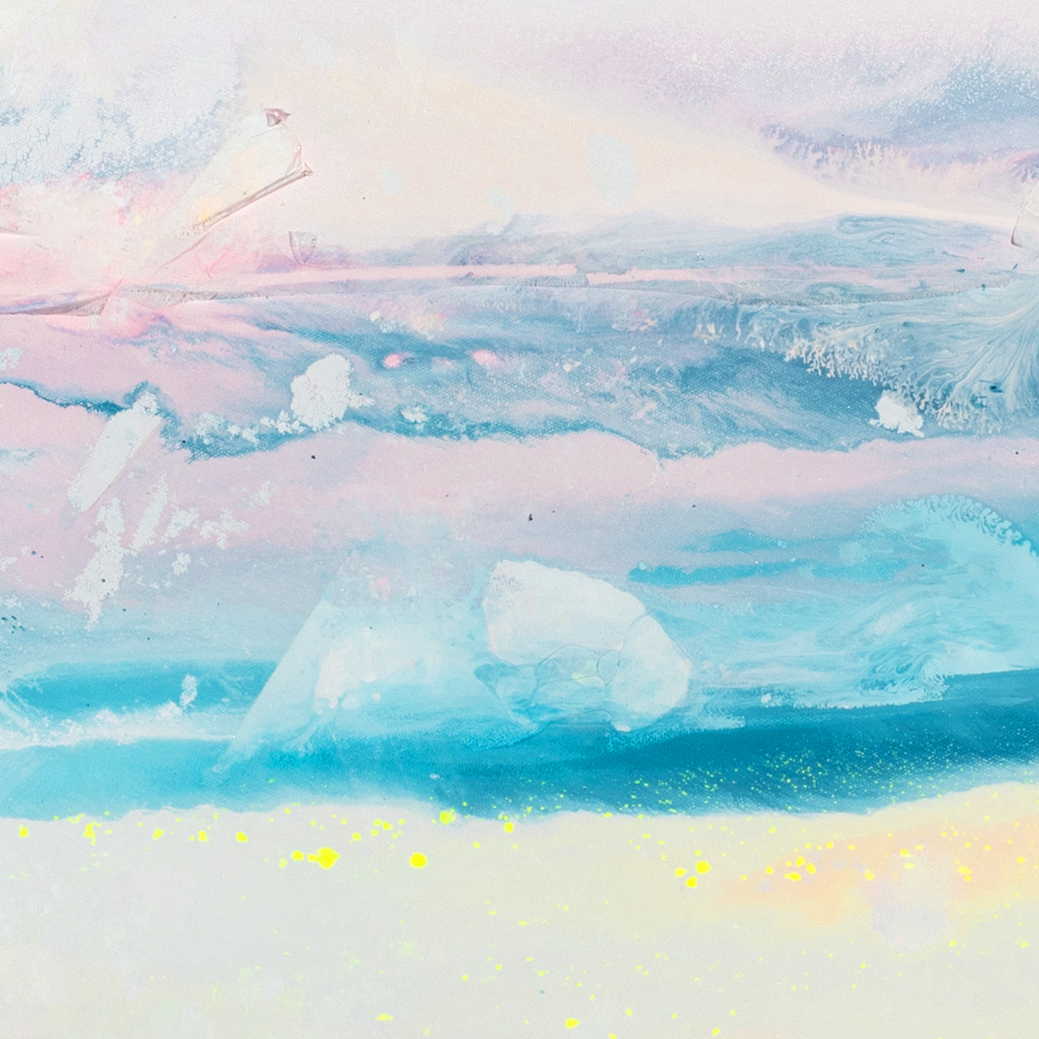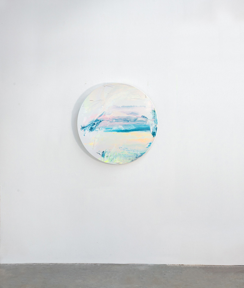 Utilisant la peinture, le plastique et l’eau comme médiums, elle crée des combinaisons colorées où une infinité de dialogues est possible.